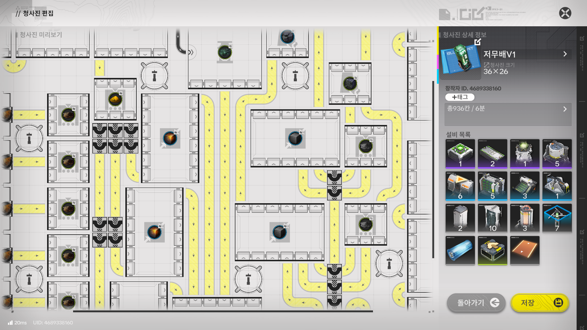 | (26*36) 936칸 | 오리지늄 광석 (180/분) (6라인) | 저용량 무릉 배터리 (6/분) | 물길 연결 필수 |