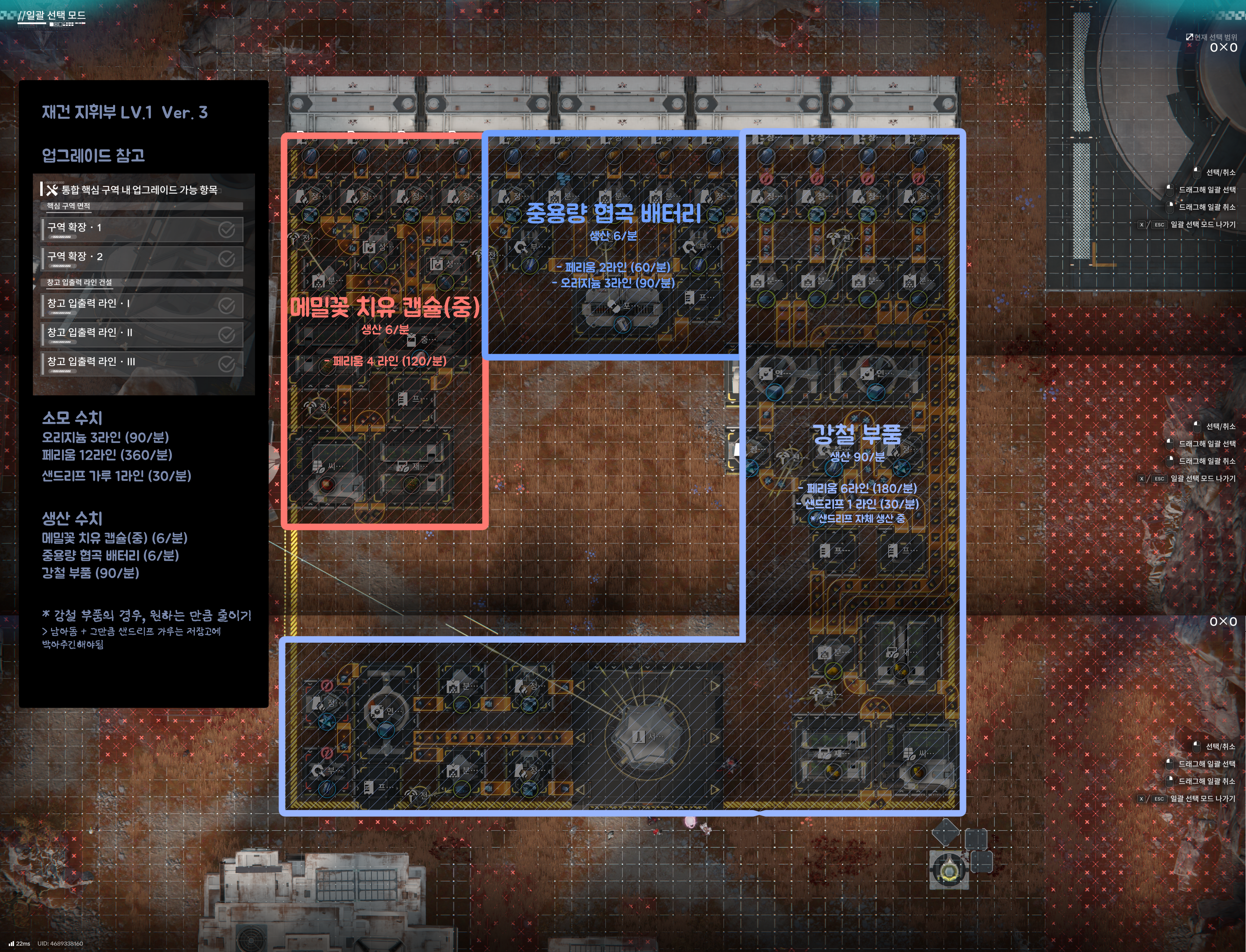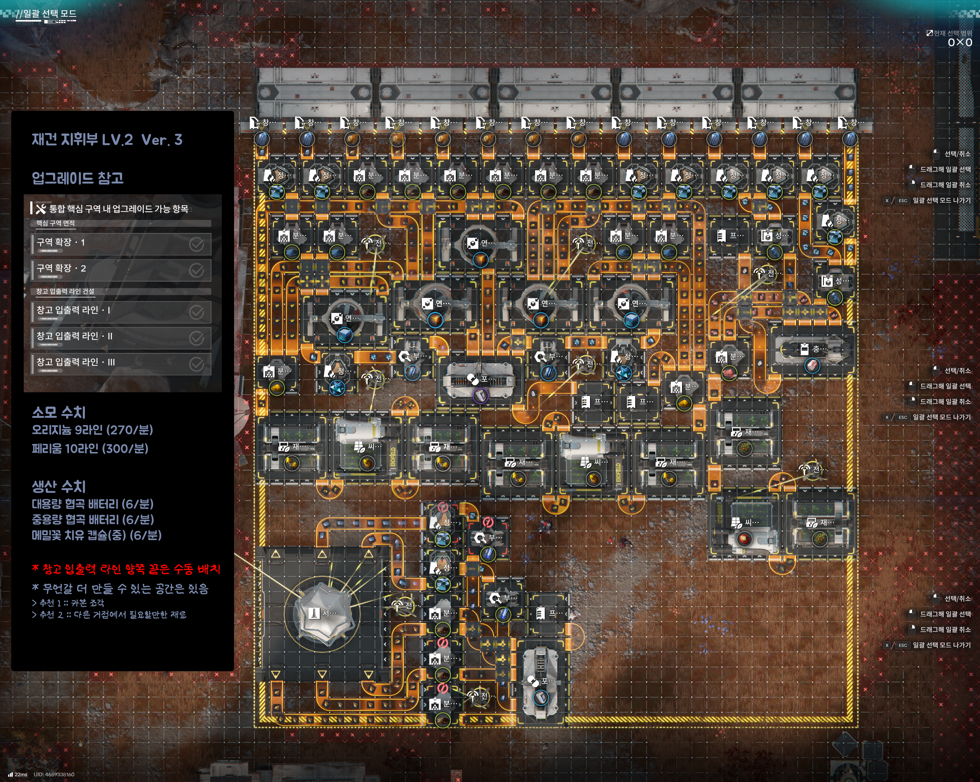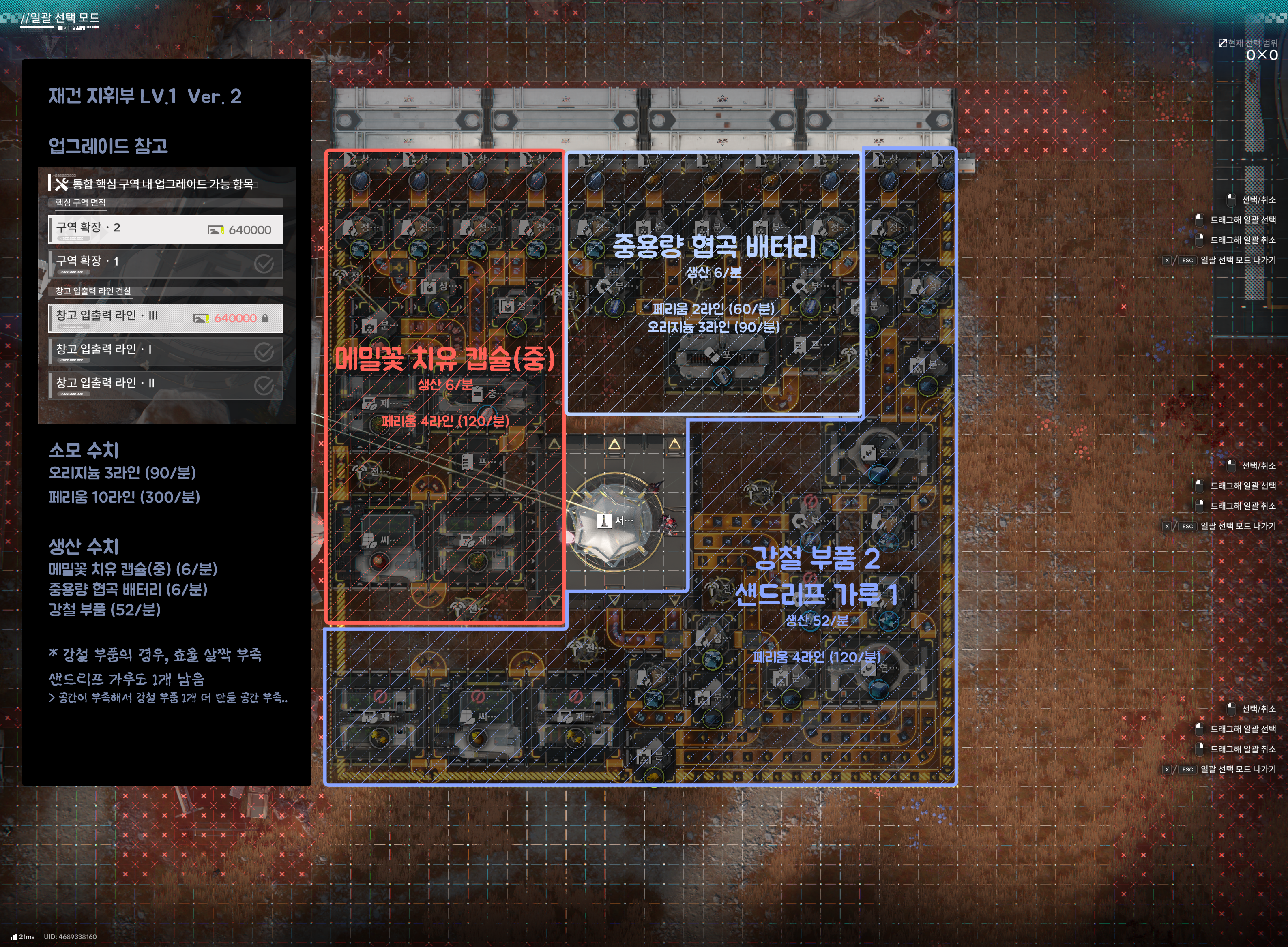 재건 지휘부 lv.3 주요 생산품 및 공장 설치 방식이 동일함으로 lv.2 참고
