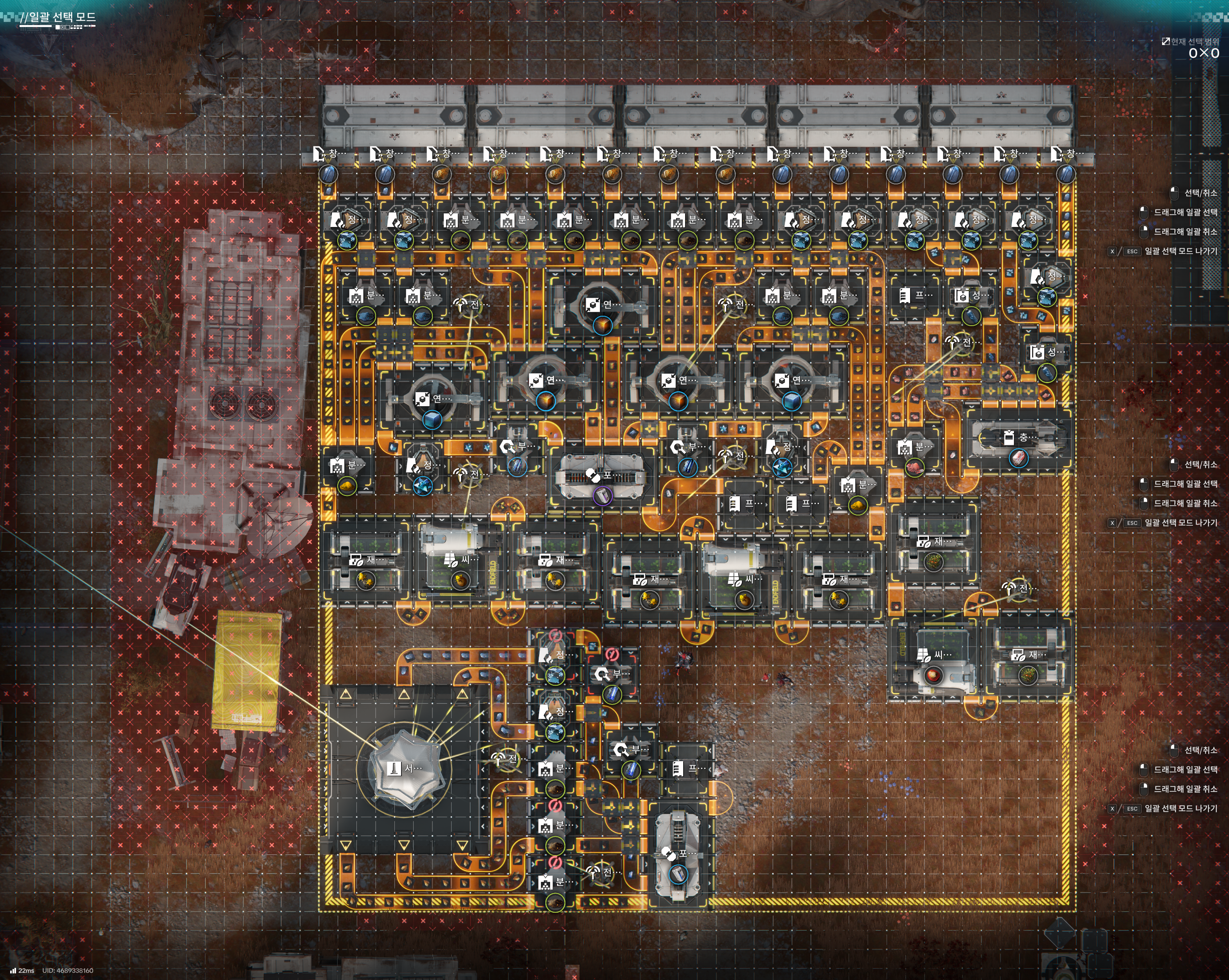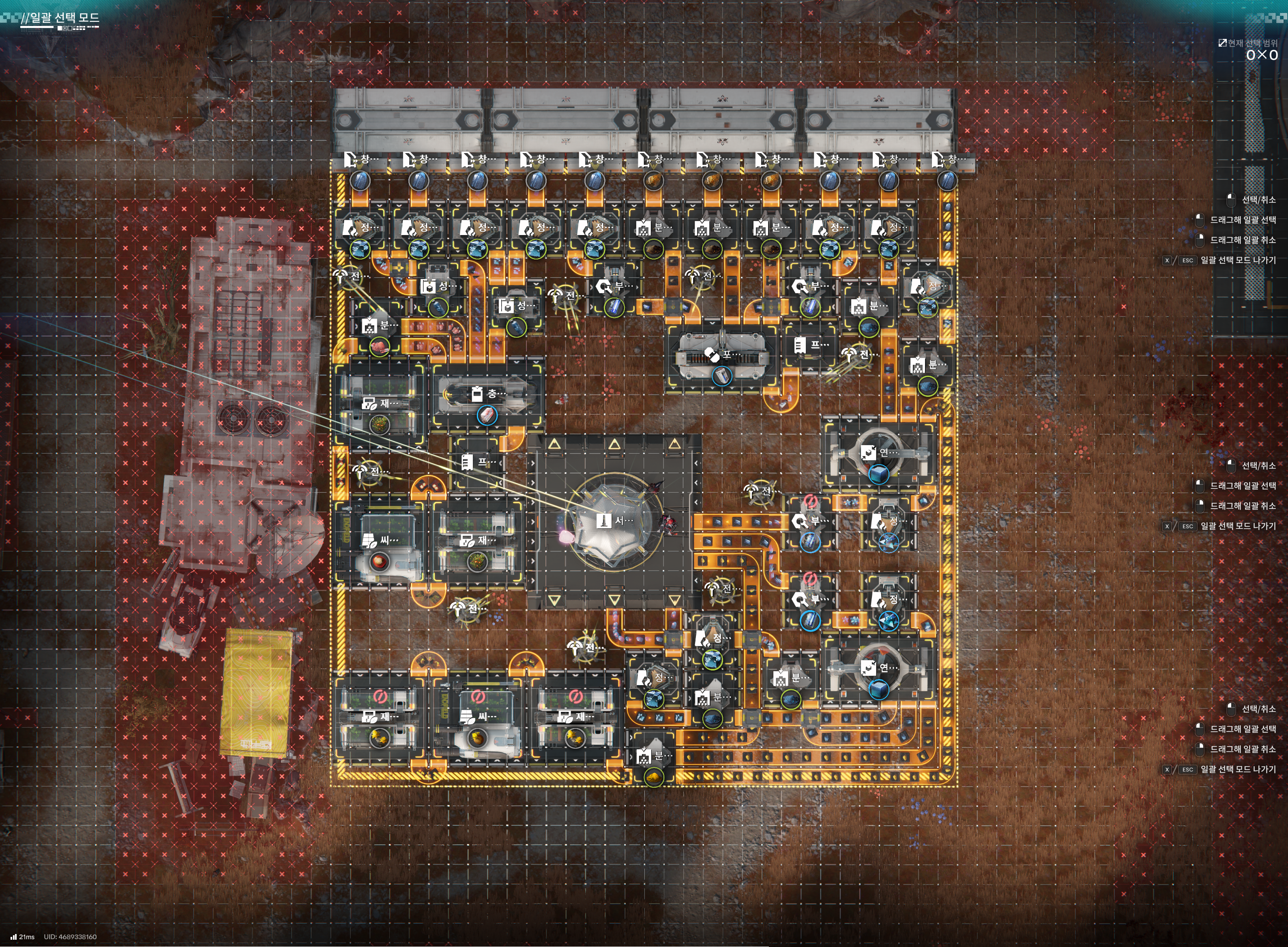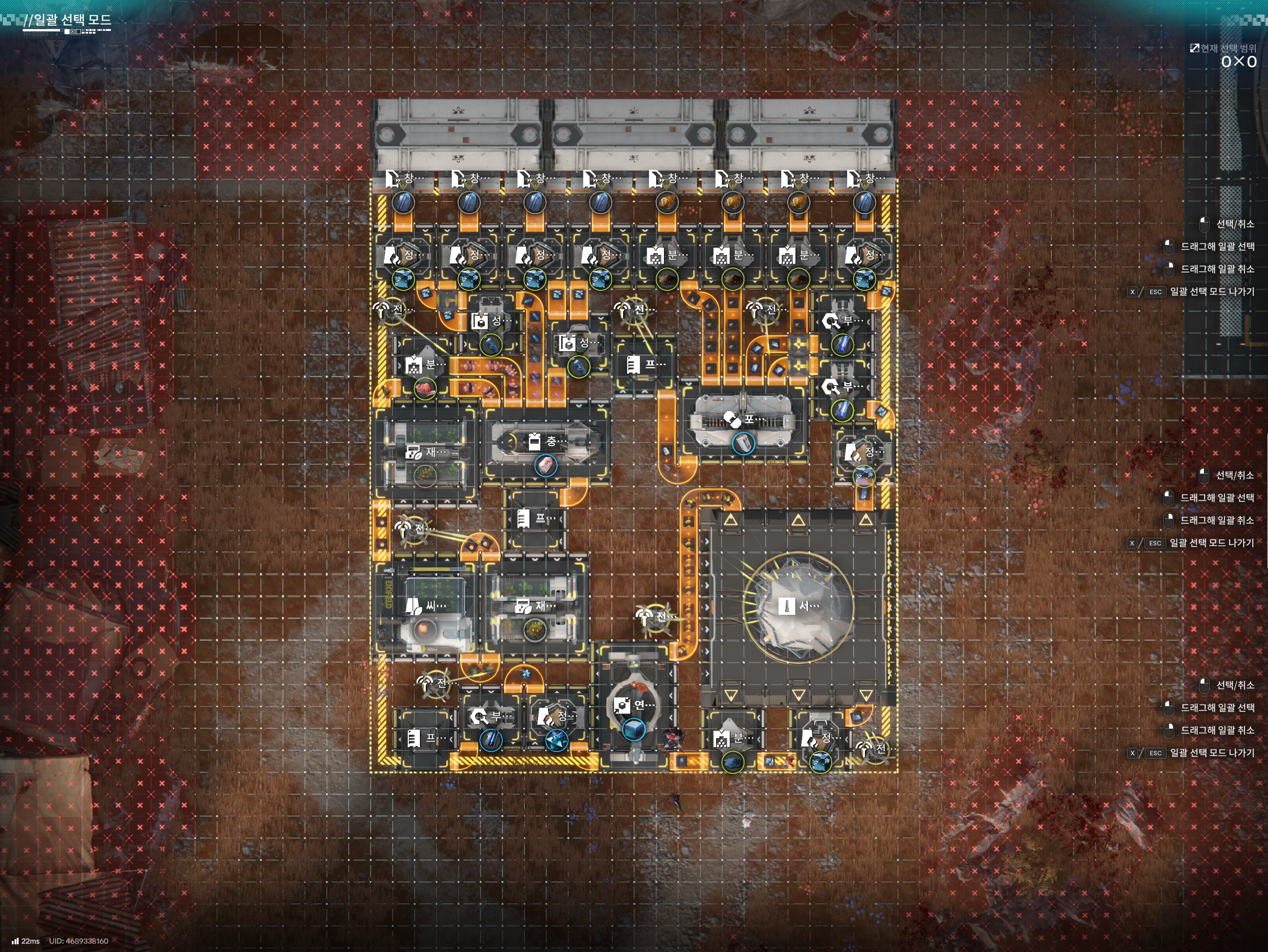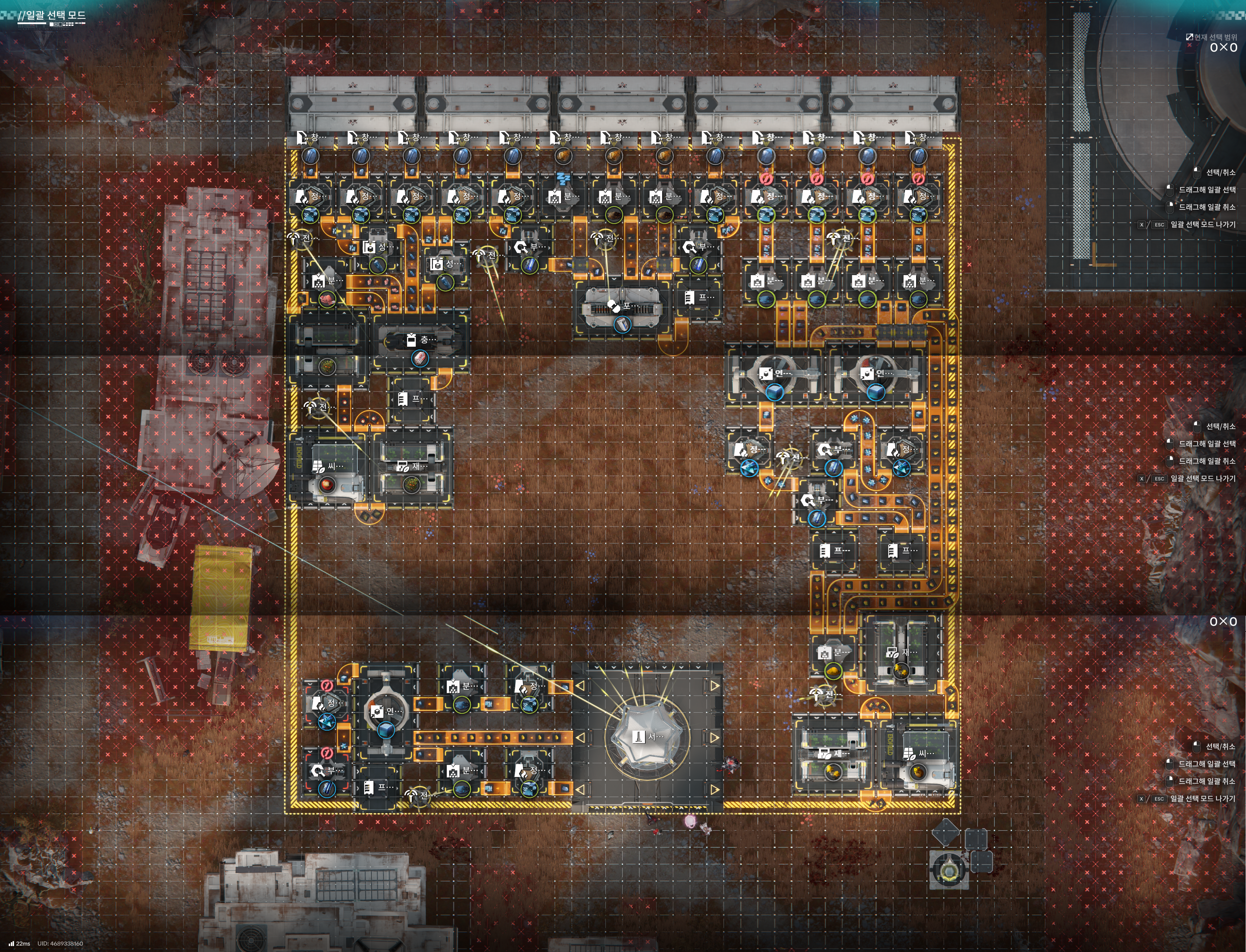 총 칸 소모 자원 수치 생성 자원 수치 0*0 (0칸) 오리지늄 광석 0/분 (라인) 페리움 광석 0/분 (라인)